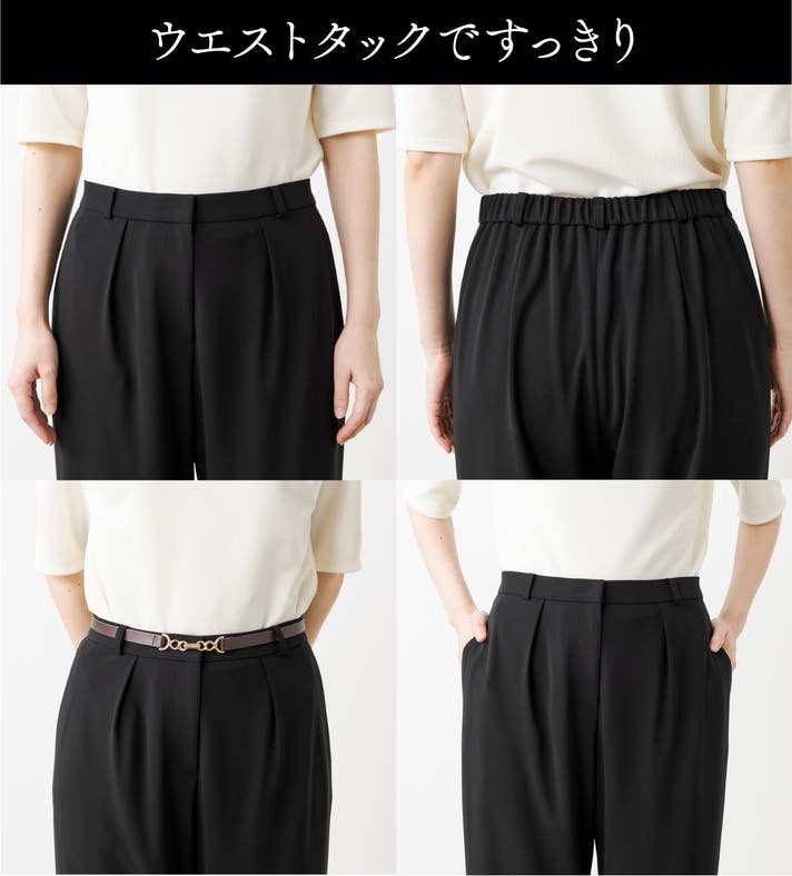 ウエストのワンタックはさりげなくお尻や腰回りの張りをカバーしてくれるので、 動きが制限されず着心地抜群。