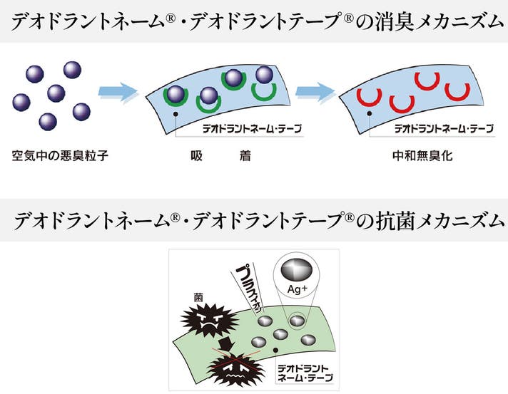 消臭&抗菌性効果に優れたフィルムラミネート消臭ネームです。無機物微粒子と銀成分を特殊な樹脂に練りこみフィルム化されています。 洗濯やドライクリーニングでも機能を維持することができます。