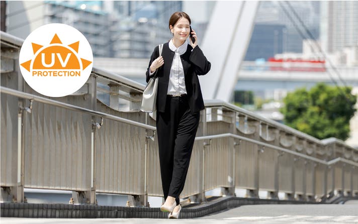 紫外線遮蔽率99%以上の生地を使用。外出時や日の当たる屋内で、大切なお肌を紫外線から守ります。