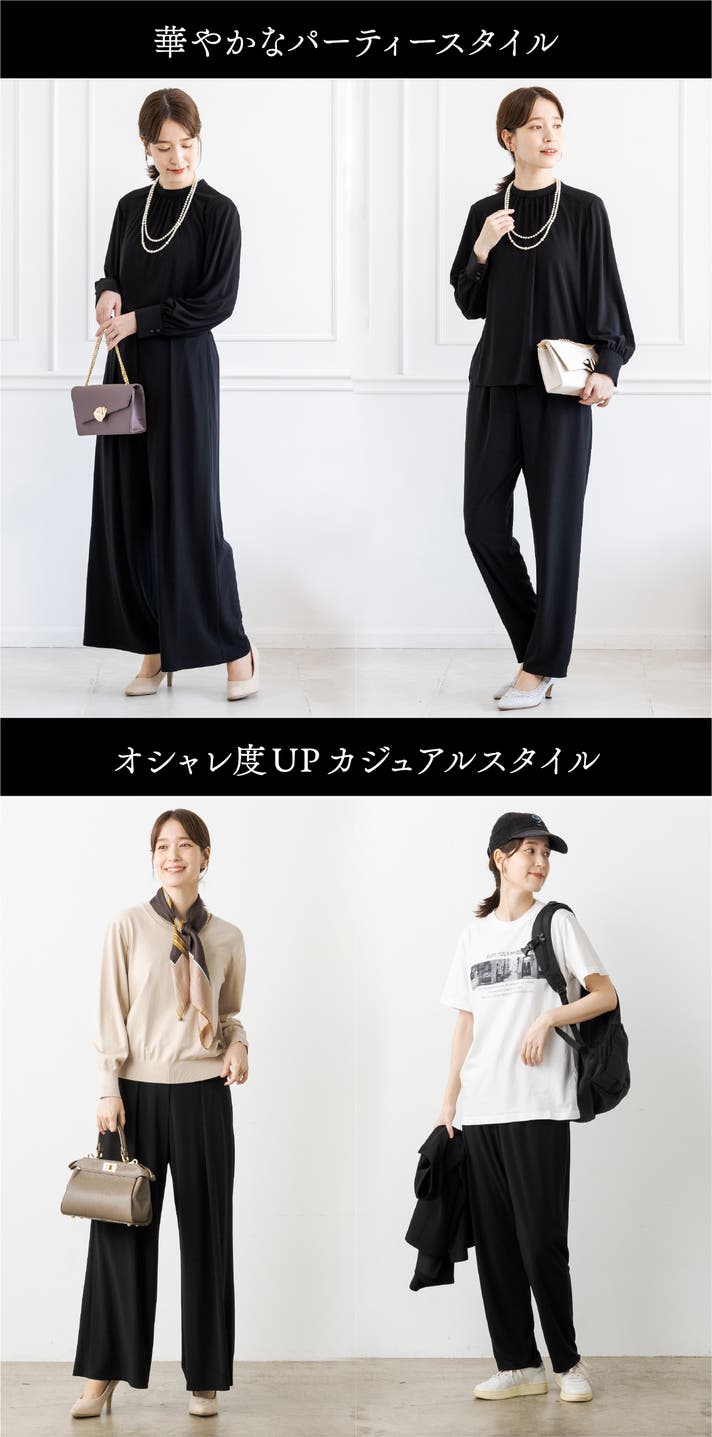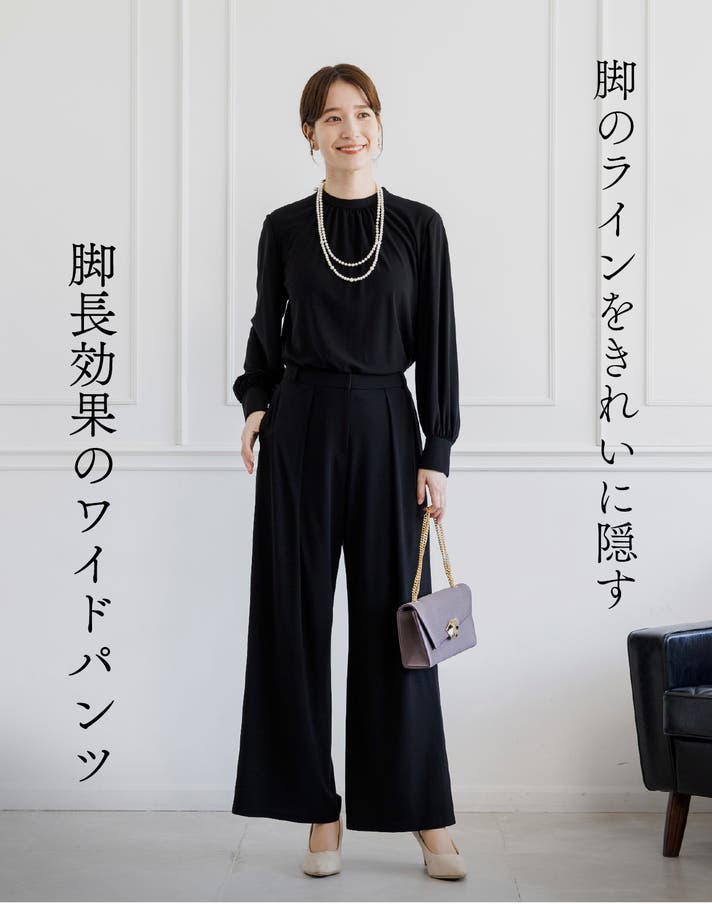ハレの日から日常まで、実力の着回し力。漆黒の黒がどんなスタイルも引き締め、スタイルアップしてくれます。