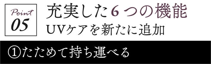 持ち運びポーチ付きで畳んでもシワになりにくい素材を使用。広げると綺麗なシルエットが蘇ります。