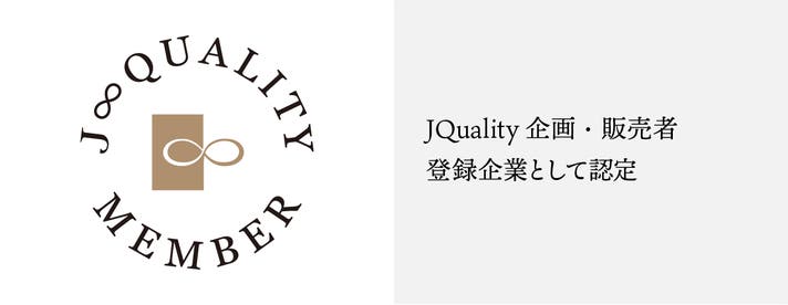 2015年から「織布・編立」「染色整理加工」「縫製」「企画・販売」、モノづくりにおける品質を限りなく追及した日本製の商品にのみ付与される「J∞QUALITY」認証制度の企画・販売者登録企業として認められ、パターン力・縫製力・デザイン力を強みとしています。