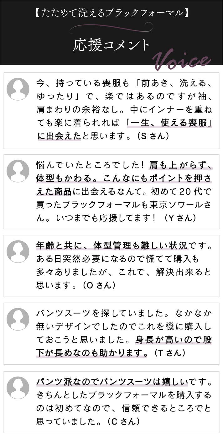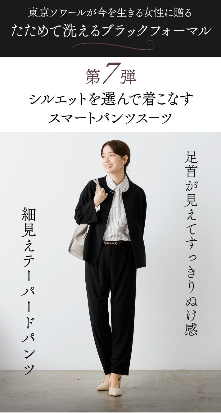 着やすさから細部のデザインまで徹底的にこだわり、東京ソワールにしかできない総合的技術力を活かして、ブラックフォーマルとしての品格を保つ【たためて洗えるブラックフォーマル】を作っています。