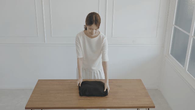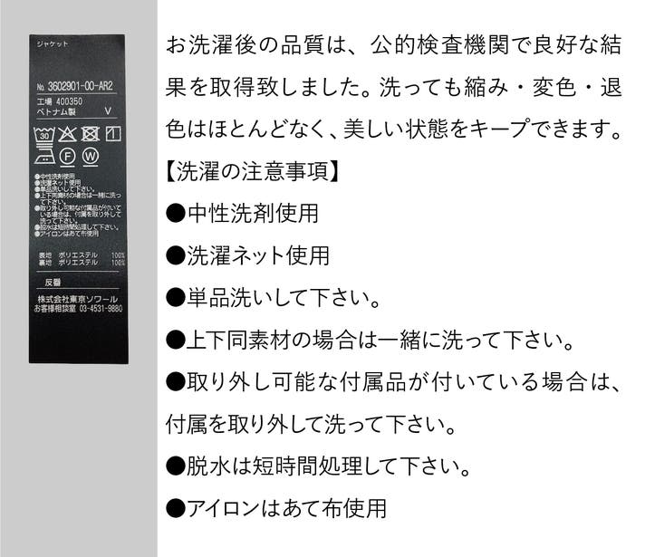 ※長時間畳んだままの状態が続いたり、圧力が加わり続けるとシワが付くことがあるためご自宅に保管する際はハンガーにかけて収納されることをおすすめします。