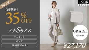 【超早割】35%OFFグレージュパンツスーツ(プチS)