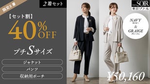 【2色セット】【超早割】40%OFFネイビー&グレージュパンツスーツ(プチS)