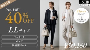 【2色セット】【超早割】40%OFFネイビー&グレージュパンツスーツ(LL)