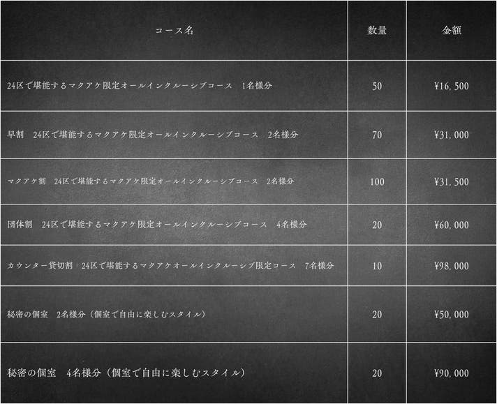 【団体割】24区で堪能するマクアケ限定コース4名様分