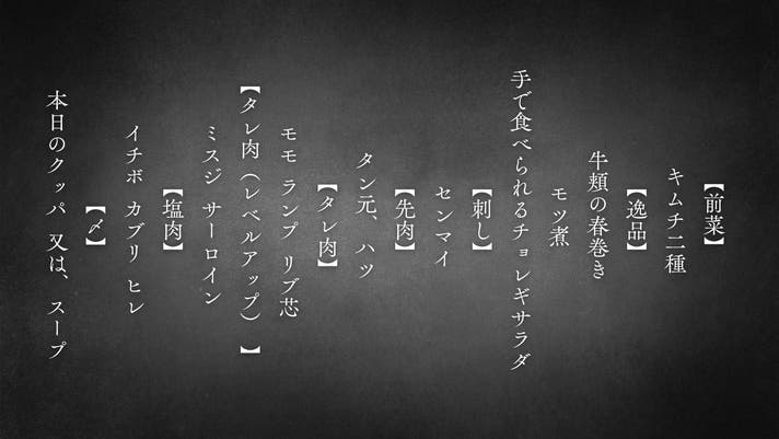 - お鮨屋さんのような焼肉体験を。焼肉の伝統と文化を継承しつつ新たな楽しみ方を提案させて頂きます。