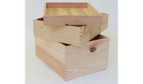 また、通常は加工に技術を要するために敬遠されがちな節付きの板をそのまま活用しているので、箱の個性が強く、一点一点違った表情を見せてくれます。