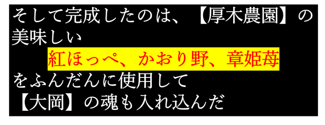 【厚木農園】には余っていた廃棄処分予定のいびつな苺や小さい苺を冷凍保存し、お送りいただきまして、新作製作の挑戦する運びが整いました。【大岡】は苺を加工・アレンジをし、幾度も幾度も新作へのチャレンジをし、ようやく挑戦は身となり、「ガトーショコラ」焼き菓子や「ボンボンショコラ」チョコ菓子の材料として練り込むことができ、至極の逸品を完成させたのです!