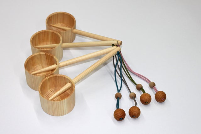 【4本セット】マイ柄杓(HISHAKUん)+ 木珠付き根付ストラップ