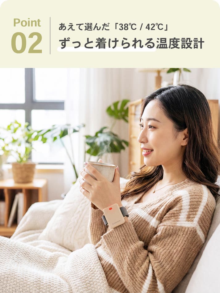 外出時や特に寒さを感じる時には、じんわりと熱が染み渡る「42℃(高温モード)」を。