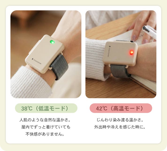 「温まりたい」と思ったその瞬間に、あなたの手首に小さな温もりが灯ります。こ