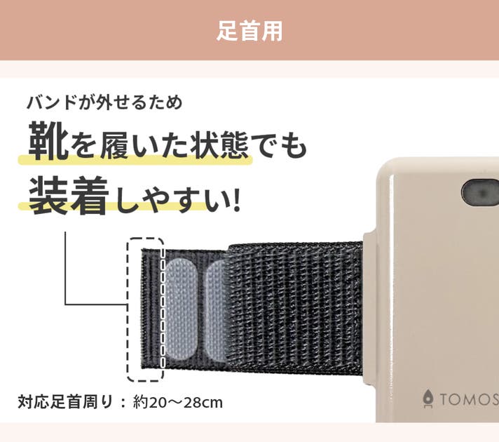 手首用のTOMOSHIBIに加え、今回はバンドの長さやフィット感を足用に最適化した「足首専用モデル」もご用意しました。
