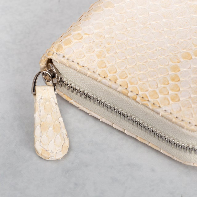 - 贅沢にパイソンの1枚革を使った財布、外部だけでなく内部もパイソン貼りの全面仕様。