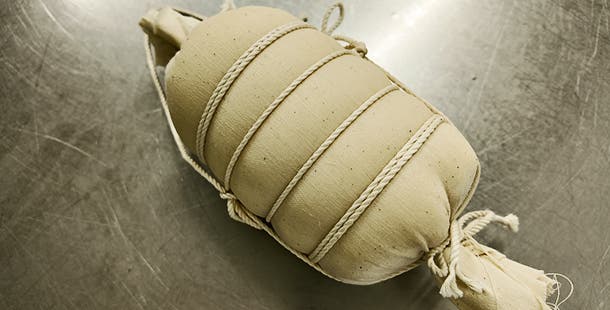 布で巻くことにより、肉の旨みを閉じ込め余分な水分を抜き出します。