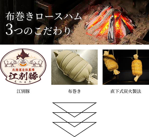 - 昔ながらの製法を現代に伝える布巻きロースハム。