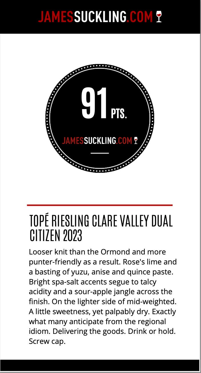 同じく去年発売したTOPE デュアル・シチズン・リースリング 2023も91点を獲得しました!(こちらも今後評価してもらう予定です)