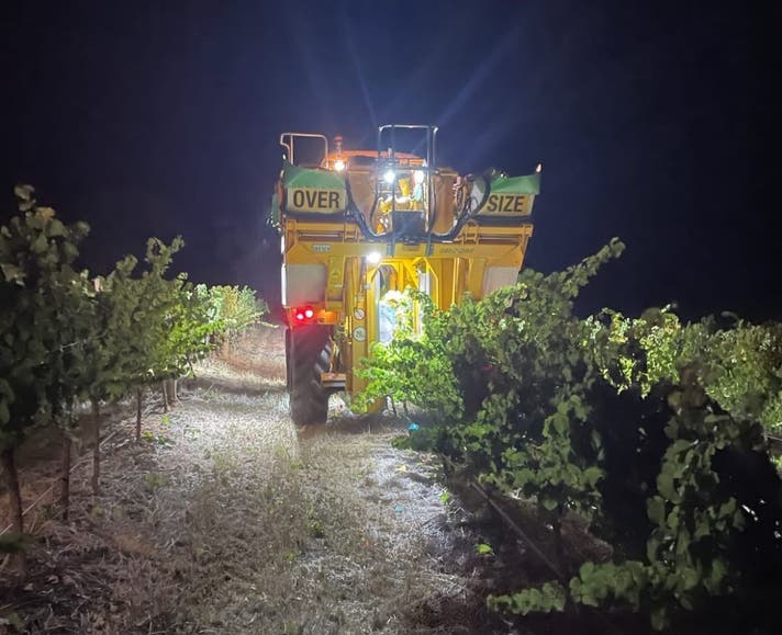 熱によってブドウの品質低下を避けるため、夜明け前の涼しい時間帯にブドウを収穫。