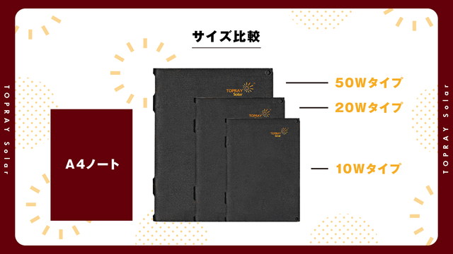 ご使用の目的・用途にあわせて、大きさ・出力が選べる10W、20W、50Wの3タイプをご用意しました。