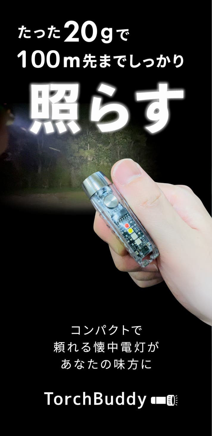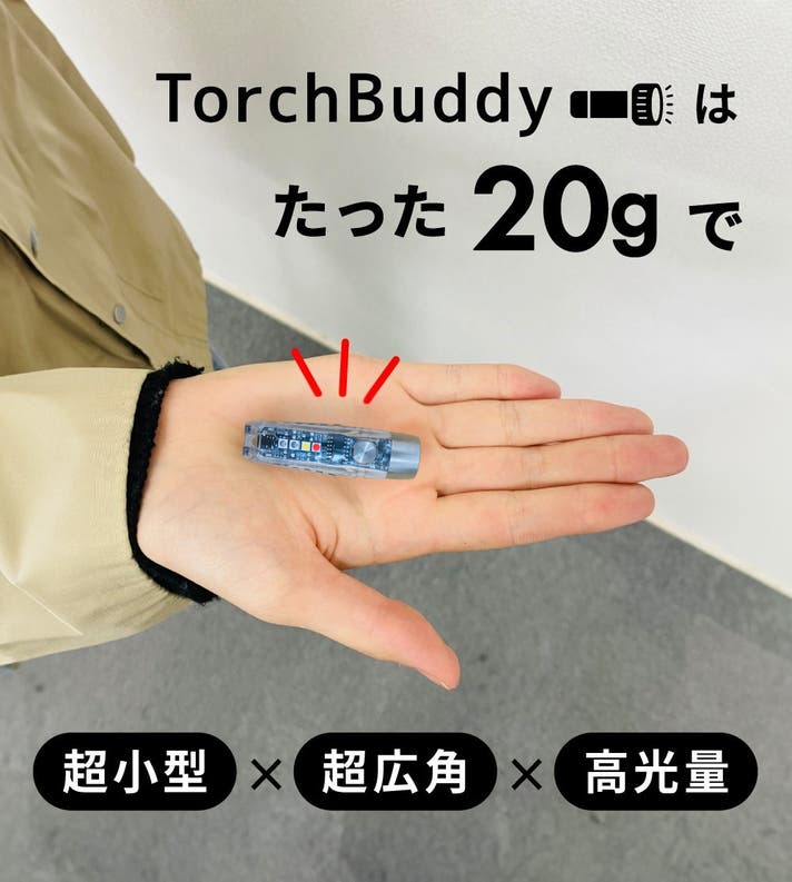TorchBuddyは、「Torch(懐中電灯)」と「Buddy(相棒)」を組み合わせた、どこへでも連れていける“あなたの相棒”のような小型LED懐中電灯です。
