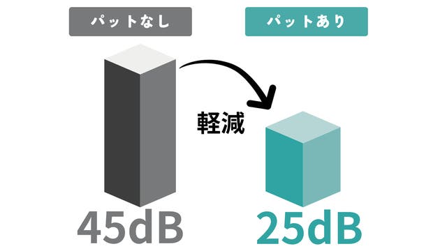 ※消音テストは、岡山県工業技術センターにておならの音を再現するジグを使って発生させた音を1m離れたマイクで10秒間計測し騒音レベルの平均値を算出した結果