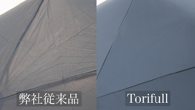 つまり、超撥水加工の折りたたみ傘のTorifull(トリフル)はこれまでの傘よりも傘布の表面に水滴がほとんど残らない生地となっているのです。