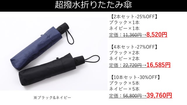 超撥水折りたたみ傘 4本セット ブラック ネイビー