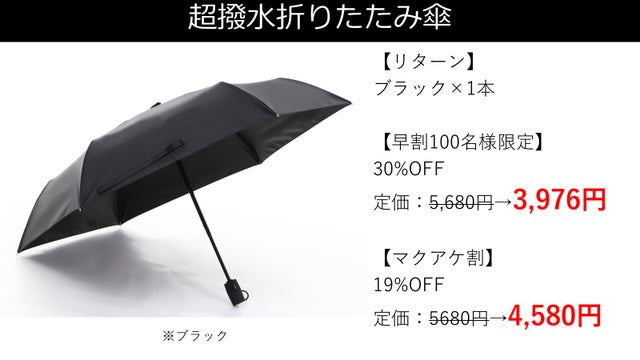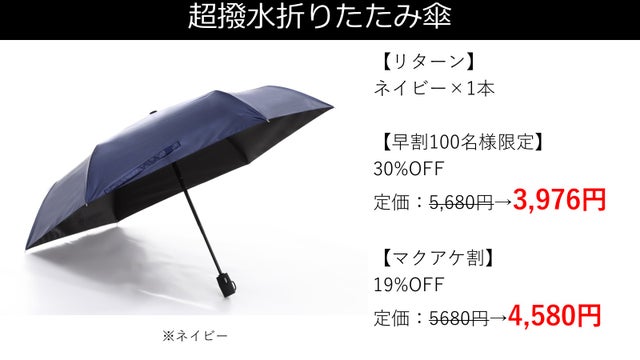 【早割】100名様-超撥水折りたたみ傘 1本