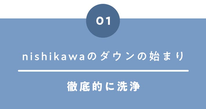 nishikawaの最高水準の加工を施した天然ダウンは、目覚めた羽毛と呼ばれるほど、羽毛の特徴を最大限に引き出すよう、特別な仕立て・選別を行なっています。