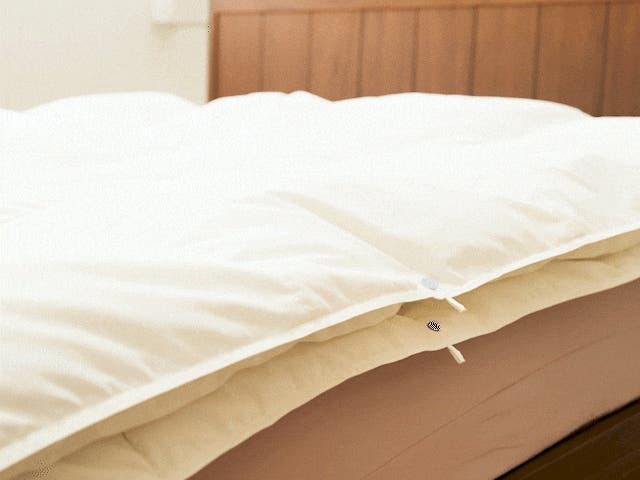 A:肌掛けふとんを身体側にしていただくことをおすすめします。そのようにご使用いただいた方が、ドレープ性(お肌への添い)が高くなります。