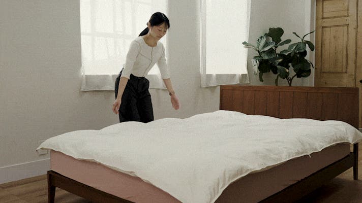 生地がとても柔らかく体に沿うため、寝返りすると寒くなる“スカスカ地帯”をつくりません。
