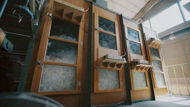 風の力だけで選別機内部の高い壁を超える羽毛のみを採用する、nishikawa独自の方法で良質な羽毛だけを丁寧に選別していきます。
