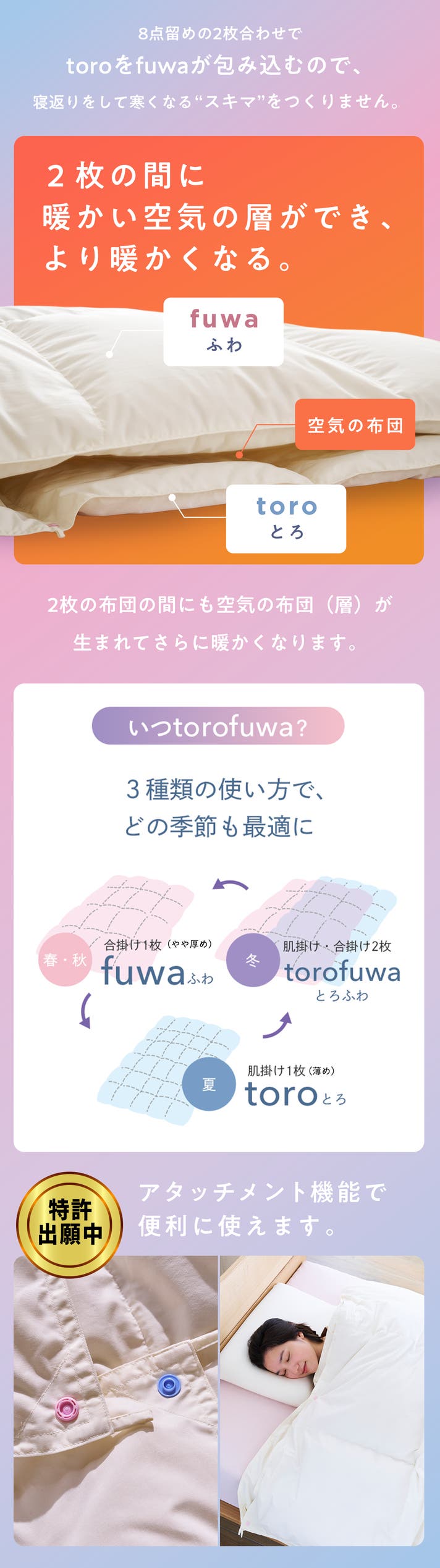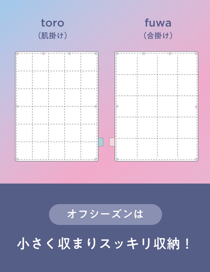 Q:2枚合わせにした場合、肌掛け(toro)、合掛け(fuwa)のどちらを上下にしたほうがよいですか?