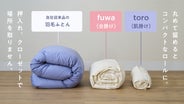 toroを使わない時期や、fuwaを使わない時期はボタンを留めて、小さく丸めることができます。