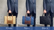 カラー:Khaki(カーキ)、Navy(ネイビー)、Black(ブラック)