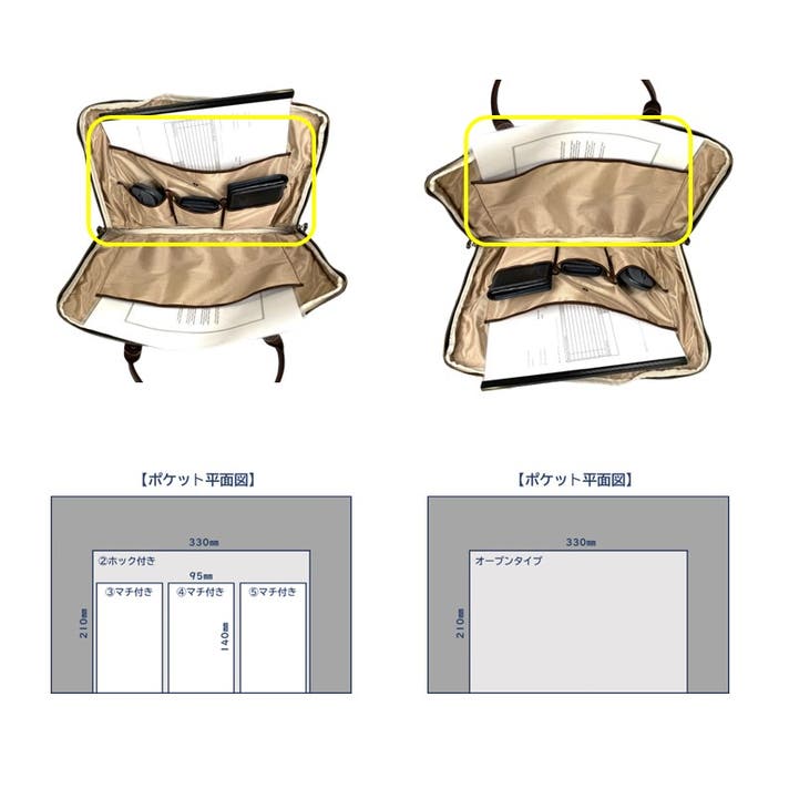 ポケット:オープン(約 縦210×横330mm)※A4サイズ収納
