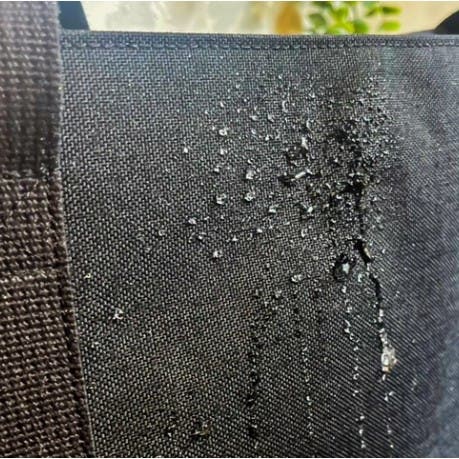 CORDURA®️はPU(ポリウレタン)加工が施されているため、撥水性に優れています。突然の雨などでも、バッグの中まで水が染み込んでしまうことはありません。