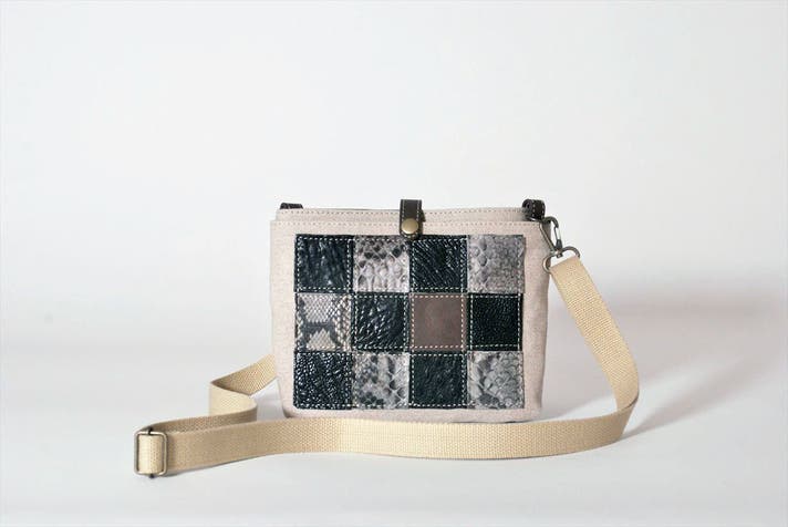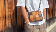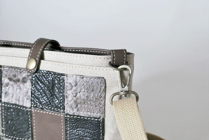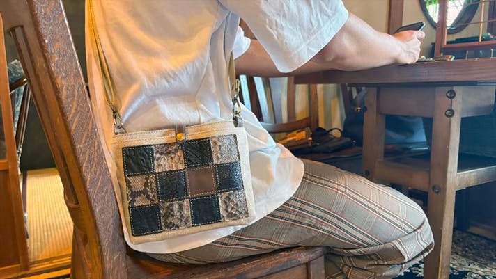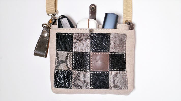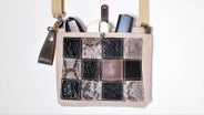 バッグの顔とも言えるのが、前面に施されたレザーパッチワーク。