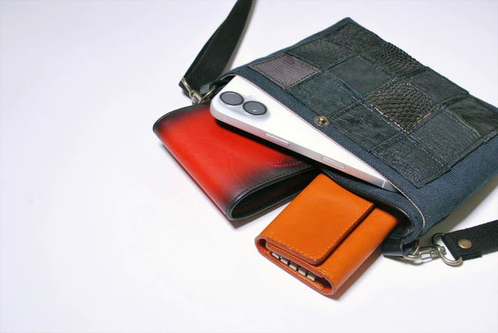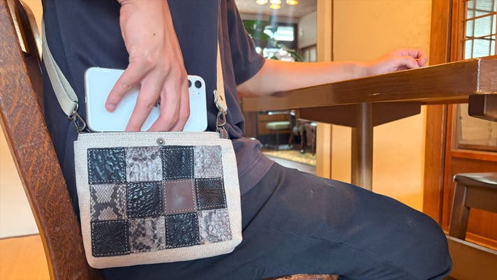 1) スマホを“握ったまま”使えるサコッシュの口からスマホをそのまま自然な向きで引き出せるため、持ち替えが発生しません。電話・改札・QR決済の一連動作が滑らかに。