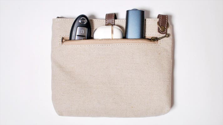 このサコッシュにはファスナーポケットがあり、鍵やカードケースなどの小物をしっかり定位置に収納できます。