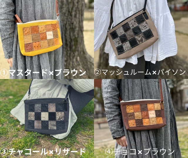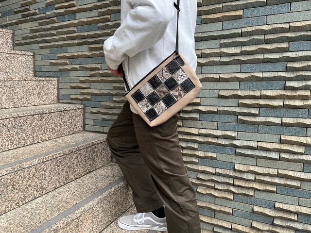 - オーストリッチ・リザード・パイソンの高級革×倉敷帆布の大人デザインのお出掛けサコッシュ。