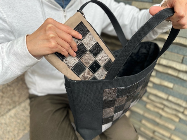 女性・男性を問わずに持って頂けるパッチワークデザインです。