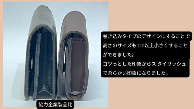 デザインだけではなく、小さすぎない・薄すぎない、出し入れでもたつかないマチ幅や仕様で、 スマートな動作になる第一印象を大切にします。