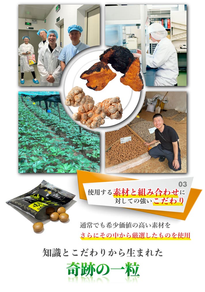 その中でも品質の高い原料を求め、中国・雲南省文山の畑や市場を実際に訪れ、確かな品質の三七人参だけを厳選して輸入しています。