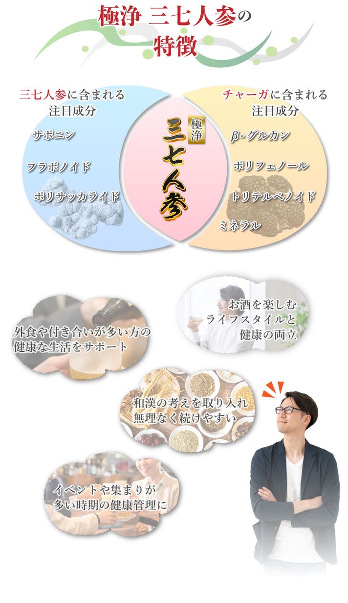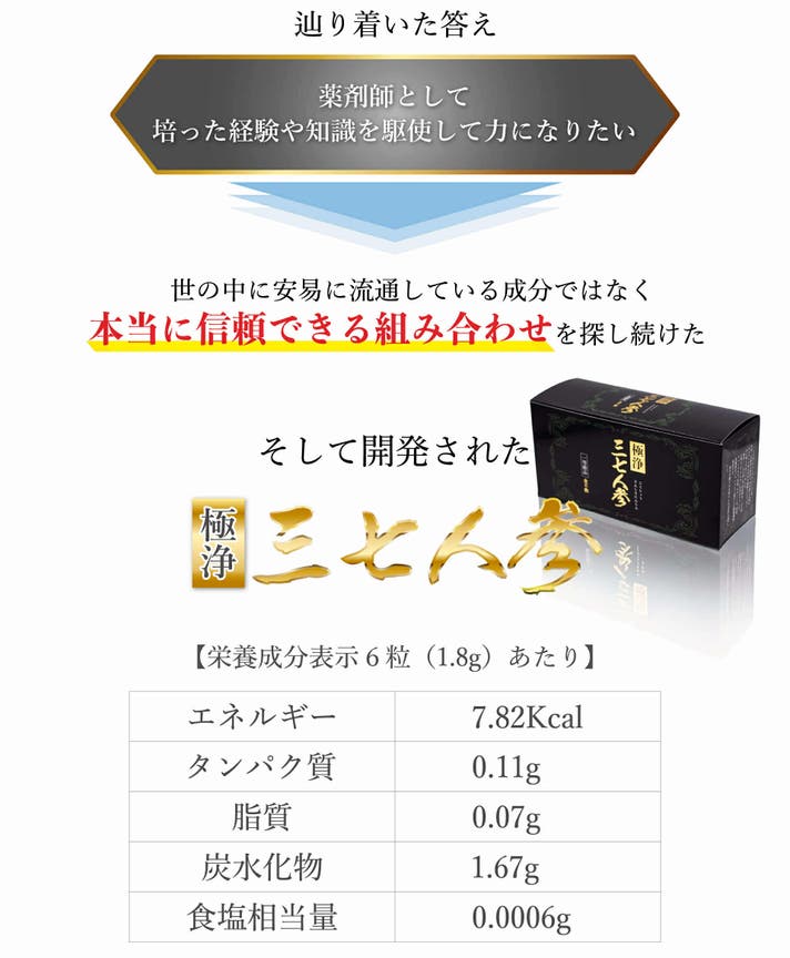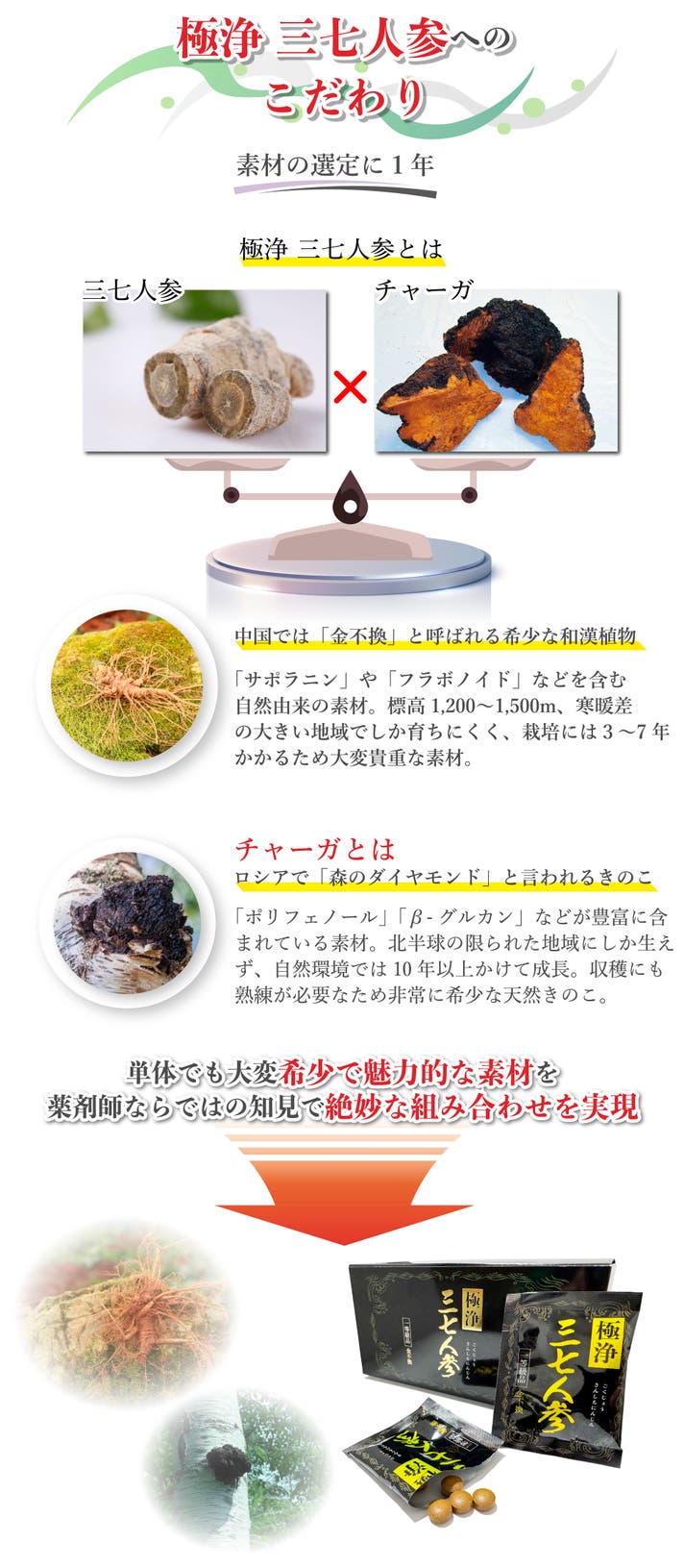 そんな想いから、この和漢の知恵をもとにしたサプリメント《極浄・三七人参》を企画しました。