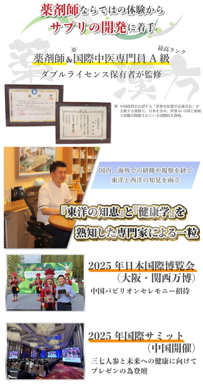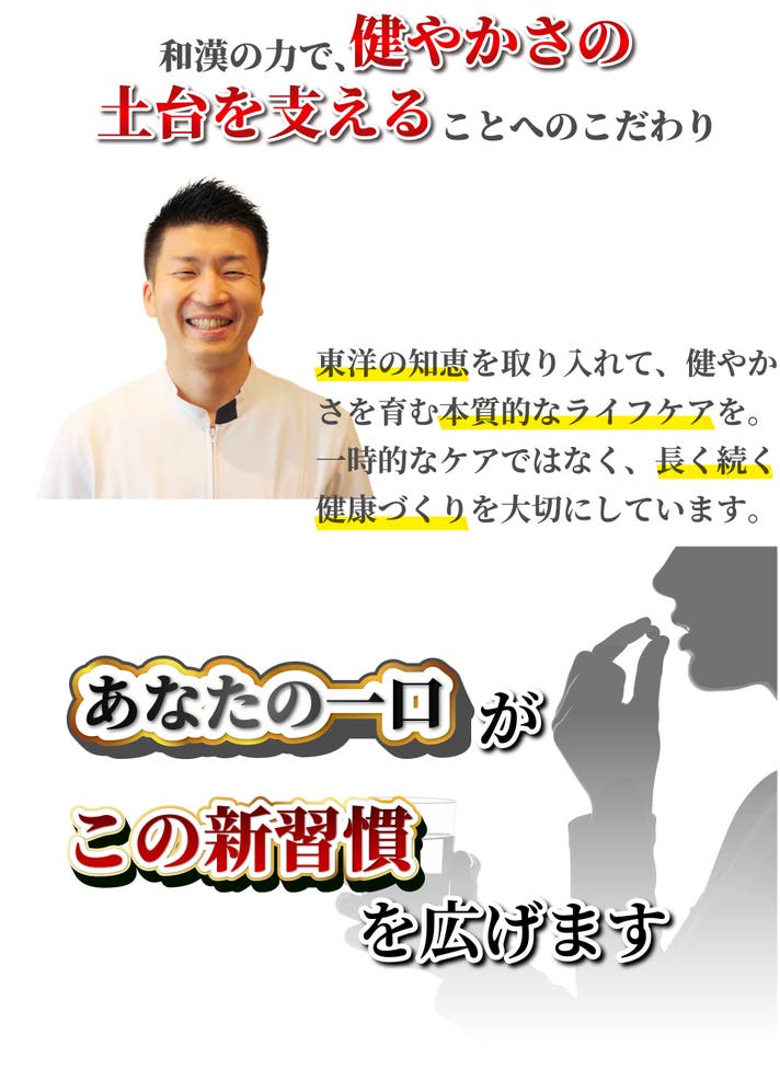 東洋や和漢の理論をベースに、毎日の習慣に取り入れやすいサプリメントという形を選びました。