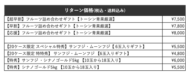 トーシン青果が厳選したこの旬の果物を、化粧箱に入れてギフトでお届けします。