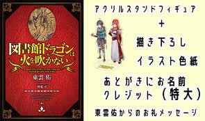 1.『図書館ドラゴンは火を吹かない』2巻(1冊)に、東雲佑直筆のサインを入れてお届けします。